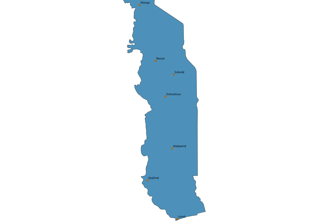 The image shows the main cities of Togo to help you find the destination of your trip.