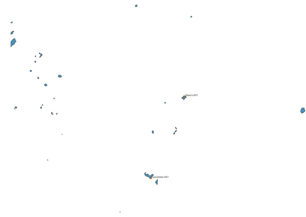 This lossless scalable map of airports in Tonga is ideal for websites, printing and presentations related to flights.